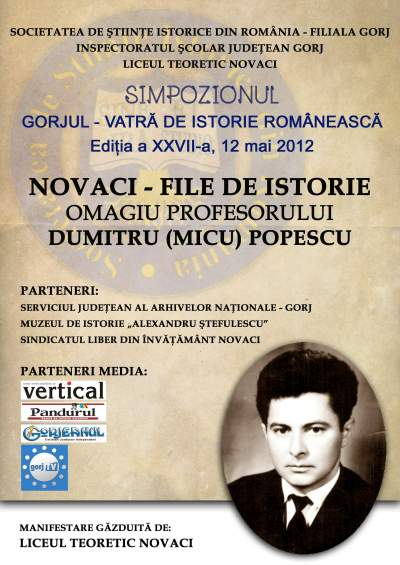 Manifestare tradiţională a filialei Gorj a Societăţii de Ştiinţe Istorice, filiala Gorj, Simpozionul GORJUL-VATRĂ DE ISTORIE ROMÂNEASCĂ va reuni la Novaci profesori de istorie din judeţ, elevi dar şi invitaţi din judeţele vecine cum ar fi Universitatea din Craiova.